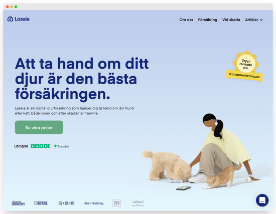 Lassie är ett relativt nystartat försäkringsbolag som nischat sig på djurförsäkringar. Deras affärsidé är att man kan få en lägre månadskostnad genom att jobba proaktivt för djurens hälsa och välmående - på så sätt hjälper man djur att få friska långa liv samtidigt som man också betalar mindre i försäkringskostnad.